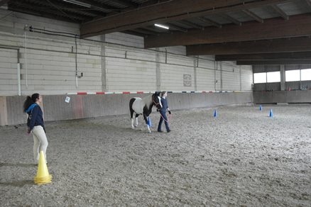 Es ist gar nicht so einfach auf einer geraden Linie zu laufen, das Pferd gerade zu stellen, gleichzeitig den Takt zu halten und das Pferd und sich selbst zu motivieren. Eine echte Aufgabe! Nach anfänglichen Schwierigkeiten lösten sich dann aber bei jedem nach und nach die Knoten im ganzen Körper und auch die Pferde entspannten sichtlich.