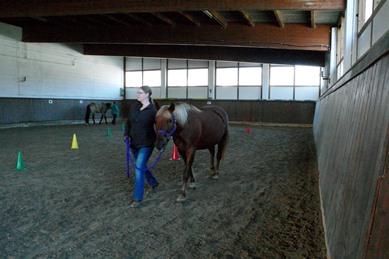 Zu Beginn stellte sich Julia als Trainerin, sowie die TGT-Methode vor. Es folgte eine Vorstellungsrunde der Kursteilnehmer (vom Anfänger bis zum TGT-Erfahrenen - und alles Trainer!) und der Pferde (von Baby bis Senior, rasseübergreifend und sogar ein blindes Pferd).