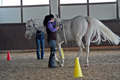Spannend war es dann, die Pferde mit ihren Besitzern live zu erleben und es zeigte sich, dass die Eigenwahrnehmung doch z. T. sehr von der Meinung eines Außenstehenden abweicht. Manche hatten angegeben, dass sie beim Kurs mitmachen, weil ihre Pferde ihnen nicht zuhören würde, manche sagten, dass ihre Pferde ganz lieb sind, aber sehr schwerfällig sind.