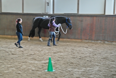 Selbstverständlich kam es auch auf die exakte Körpersprache an, was aber Julia bei allen Teilnehmerinnen so gut coachte, dass sie auch die schwierigeren Aufgaben (Pferd von sich wegschicken und wieder hierholen) nach gewisser Übung wirklich bei allen gut klappte.
