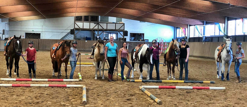 Erfolgreich und müde wurde der Kurs mit einer Trailaufgabe, die jeder einzelne Reitschüler mit geplant hat, erfolgreich beendet.