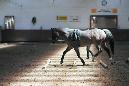 effektiv - abwechslungsreich - Balancetraining - Gymnastizierung u.v.m. Die Arbeit mit der Longe oder Doppellonge kann nicht nur effektiv sein, sondern auch eine sinnvolle Abwechslung zum Reiten bieten. Allerdings sollte man sich nicht unbedacht ans Longieren wagen, sondern das Ganze bedacht angehen und den fachgerechten Umgang mit Longe und Longierpeitsche nicht unterschätzen. Wie beim Reiten kann man auch hier großen physischen und psychischen Schaden anrichten, wenn man sich nicht vorab mit dem Longieren beschäftigt und auseinandergesetzt hat. Doch das Gute daran ist, dass es jeder erlernen kann, der es wirklich will. Im Vergleich zum Reiten ist das Longieren leichter und schneller zu erlernen Hat man erst einmal genug Hintergrundwissen und geht gewissenhaft mit dieser Art von Arbeit um, stellt man rasch fest, dass schnelle und vor allem sichtbare Veränderungen am Pferd im positiven Sinne entstehen. Wie es schon in dem Buch von 1939 heißt: "Der Reiter formt das Pferd" Sinnvoll eingesetzte Hilfsmittel während der Longenarbeit verhelfen dem Pferd dazu, seine Muskulatur effektiver einzusetzen. Ähnlich wie beim Sport, wo wir unter Anleitung in Kursen "Muskel- und Faszienpflege" betreiben, ist es wichtig, unsere Pferde durch geeignete Übungen fit und gesund zu halten. Dabei kann es auch mal unangenehm sein, sich auf eine andere Art und Weise zu bewegen als gewohnt. Doch das Ergebnis spricht für sich, wenn wir Verbesserungen bemerken und uns leichter und geschmeidiger bewegen können. Deshalb sollten wir uns darauf konzentrieren, das zu festigen, zu verbessern und auszubauen, was wir bereits können, während wir uns gleichzeitig auf Neues einlassen und das bereits Erlernte überdenken. Ich freue mich darauf, euch dabei zu unterstützen. Kursinhalt: